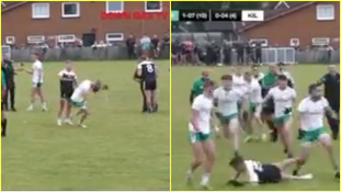 The footage from Down TV shows a mass brawl break out between the two teams, with one Burren player left on the ground, and just as things started to calm down and altercation involving last year’s goal-scoring hero Jerome Johnston, saw the whole thing escalate further.