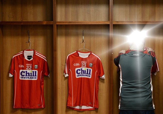 29 January 2017; Cork kit man Pat Keane hangs the Cork jerseys in the dressing rooms ahead of the Co-Op Superstores Munster Senior Hurling League final match between Limerick and Cork at the Gaelic Grounds in Limerick. Photo by Eóin Noonan/Sportsfile