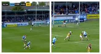 By the rule-book, players are only allowed to take four steps with the ball in their hand before either tapping it off their hurl or releasing it. You’ll often get away with more than four though, and players are testing that to its limits.