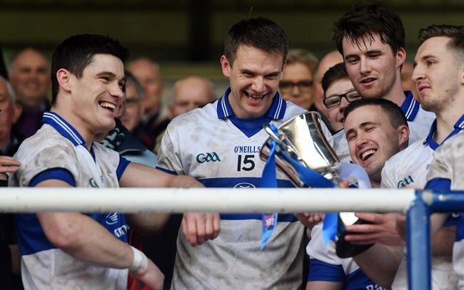 11 December 2016; St Vincent players, including captain Diarmuid Connolly, left, and Tomas Quinn, second left, celebrate following their victory in the AIB GAA Football Senior Club Championship Final match between Rhode and St Vincent's at O'Moore Park in Portlaoise, Co. Laois. Photo by Ramsey Cardy/Sportsfile