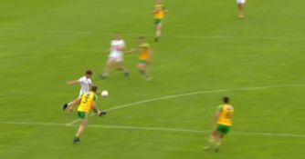“You missed the best move of the game, in my opinion. Peter Harte comes down the left wing, gets it onto that left foot, he sees Mark Bradley making a run in the other direction. With the outside of the boot, he hits this diagonal ball – but it’s not your normal diagonal ball, it actually curls around the corner and sets Mark Bradley away over the top.“It was crazy stuff, what he did. Bradley runs onto the ball, the defender’s scrambling, Bradley cuts back and puts it over. It was just like a wand the way he sent that ball around the corner and over the top.