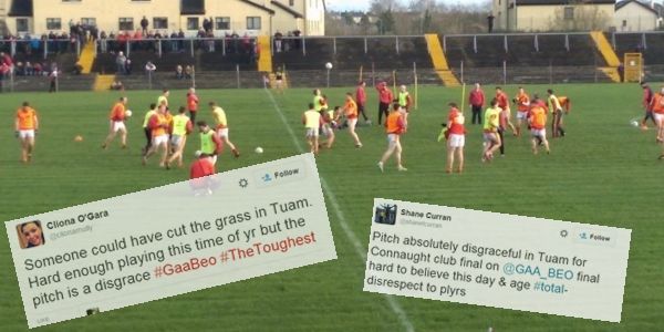The state of the Tuam pitch is a joke for a Connacht final #GAABeo