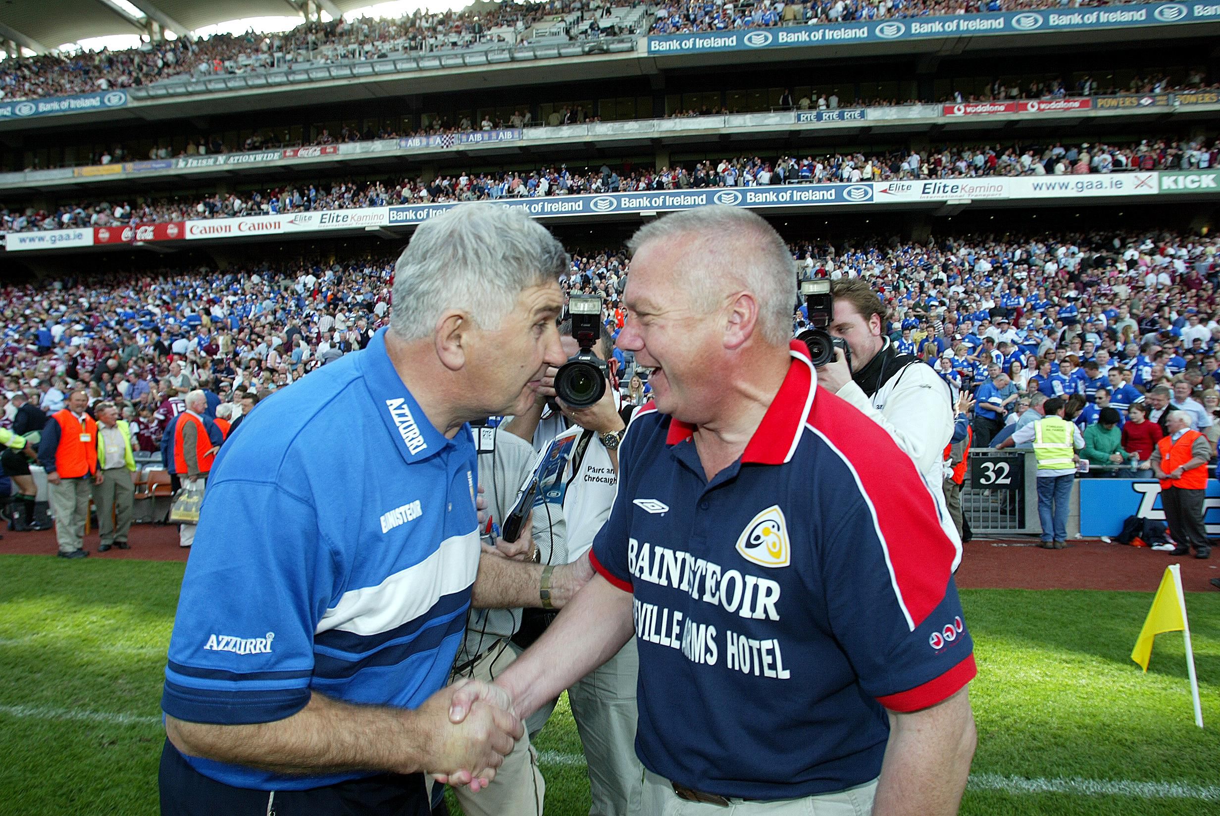Westmeath manager Paidi O'Se and Laois manager Mick O'Dwyer after the game