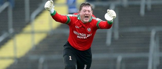 St. Brigids goalkeeper Shane Curran celebrates after his side scored a late goal