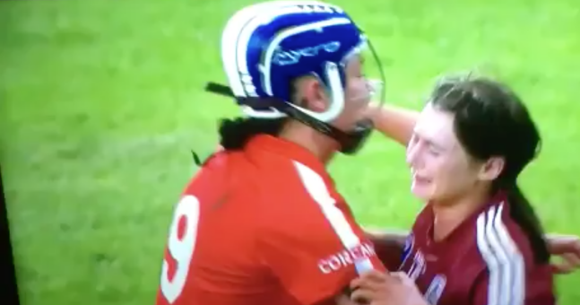 The Mullagh woman was evidently upset after the narrow loss and was but was comforted by Cork’s Ashling Thompson.