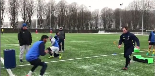 Now it’s Murphy’s turn and it is evident that he is truly getting the full rugby experience after being put on his backside during a training session with the French club.