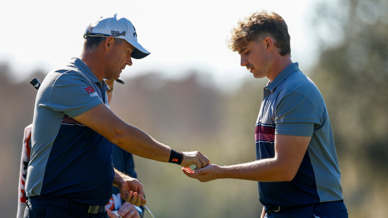 The Harrington boys are a shot further back and will tee off for their second round alongside two-time major winner Mark O’Meara and his son Shaun.
