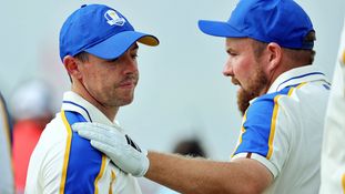 Shane Lowry and Rory McIlroy hug on the 16th green after the Offaly native lost to Patrick Cantlay on Day 3 of The Ryder Cup. (Photo by Warren Little/Getty Images)“It sucks losing,” McIlroy reflected on Sunday as his team were on their way to losing 19-9 to Team USA. “It sucks not being able to be competitive.”