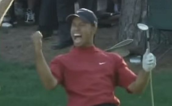 Then there’s Tiger’s lofted arm in celebration followed by that moment of intense anxiety as he wonders if it will finally drop.