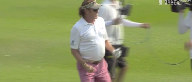 After he holed out for an eagle with an iron on the ninth hole, the Spaniard celebrated in a manner that only he could.