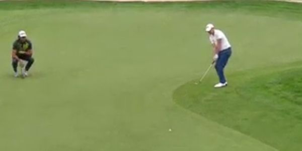 The English golfer was in action at the Porsche European Open when he was a few feet from the hole looking to push his way up the leaderboard.