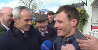 After pre-race favourite Monalee blundered and hit the deck along with Invitation Only, the 28-year-old’s mount, Al Boum Photo was left in pole position as he made his way to the final obstacle.