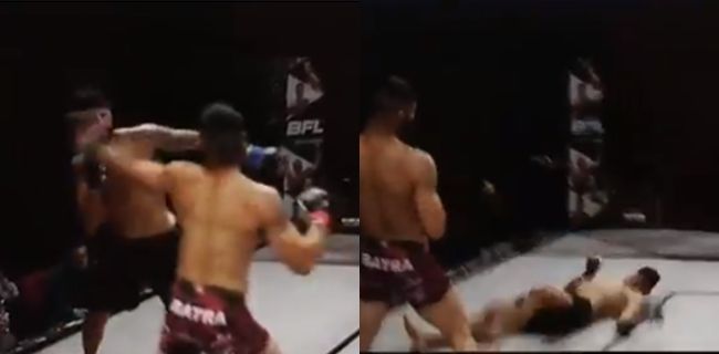 Batra won the Battlefield Fight League welterweight title… for less than a second. He scored a highlight reel knockout over Perry Hayer to win the strap. However, at the same moment, he lost it.