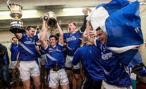 The Cratloe team celebrate in the dressing room 12/10/2014
