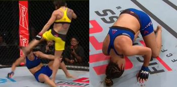 Gadelha immediately held her hands out to apologise for the illegal strike while referee Fernando Portella gave the American the standard five minutes to recover. He did not deduct a point off Gadelha. Casey eventually got back to her feet and the fight continued until the final buzzer.