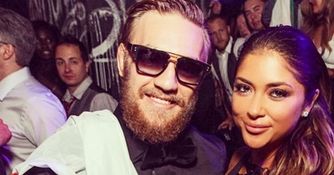 UFC Octagon Girl Arianny Celeste was one of the first to get a snap with a suited, booted and belted-up Notorious.