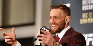 LAS VEGAS, NV - DECEMBER 12: Conor McGregor speaks at a post-fight press conference after beating Jose Aldo in their featherweight title fight during UFC 194 at MGM Grand Garden Arena on December 12, 2015 in Las Vegas, Nevada. McGregor won with a first-round knockout. (Photo by Steve Marcus/Getty Images)