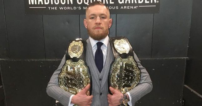McGregor got to hold the two belts aloft at Madison Square Garden and was only too happy to pose for the cameras and soak in his achievement.
