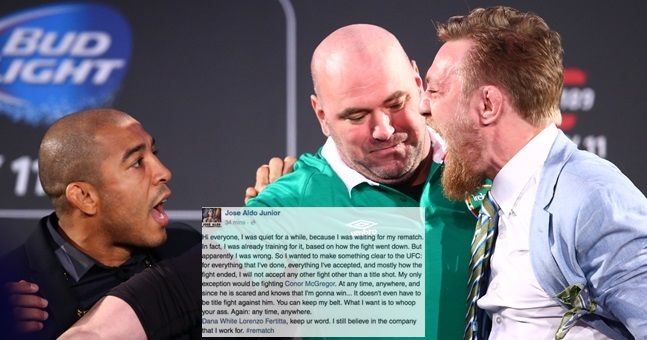 Jose Aldo, McGregor’s most recent conquest, issued a succinct ultimatum to the UFC on Wednesday night in which he claimed that either a title fight or a rematch McGregor would be the only ones that he would accept.