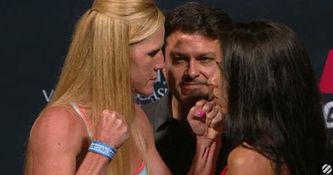 Well Holly Holm and Marion Reneau were defiantly battling to concede so much as a blink when they came face to face at the weigh-ins for UFC San Diego last night.