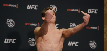 Till came out on stage just a few minutes later. He made a real statement by coming in at 169 lbs. After his weight was confirmed, he stuck two middle-fingers up to the media, who had been pestering him about making weight in the build-up to the event.