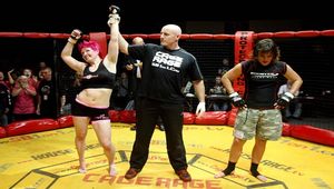 Ireland’s Aisling Daly (pink hair) fighting Majanka Lathouwers from Belgium. Daly went on to win by tap out