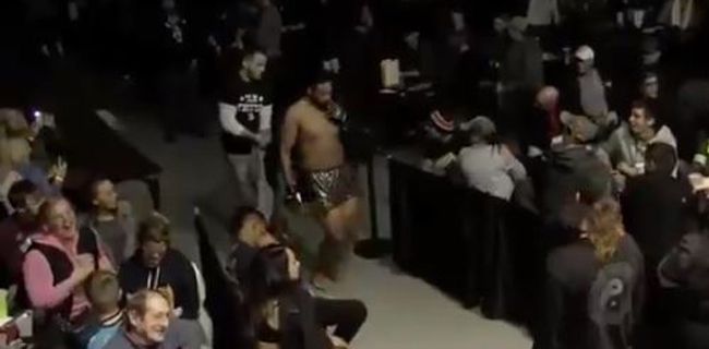 He walked out and proceed to perform an uncomfortably suggestive dance en route to the cage which has gained him a lot of attention.