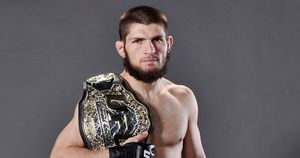 BROOKLYN, NEW YORK - APRIL 07: Khabib Nurmagomedov of Russia poses for a portrait backstage after his victory over Al Iaquinta during the UFC 223 event inside Barclays Center on April 7, 2018 in Brooklyn, New York. (Photo by Mike Roach/Zuffa LLC/Zuffa LLC via Getty Images)