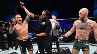 The leg kicks had essentially left McGregor as a sitting duck and Poirier was able to tee off before referee Herb Dean stepped in.