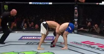 After the second knee landed, the referee jumped in and called for five minutes on the clock for Weidman to recover as Miragliotta was led to believe that both his hands were down at the time which would have made the strike illegal.