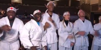 The group of fans donned the karate gi and headband GSP used to wear for his pre-Reebok deal walkouts.