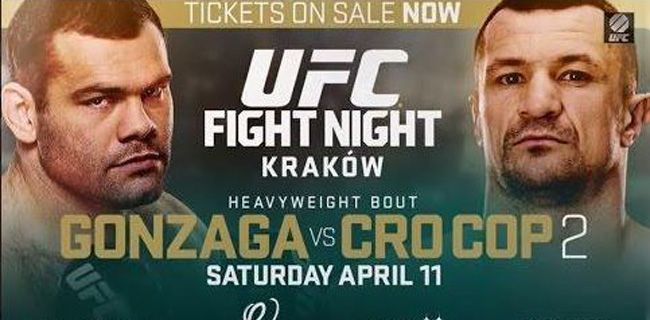UFC Krakow features a rematch between Mirko Cro Cop and Gabriel Gonzaga in the main event and takes place on April 11. It will be broadcast on PICK from 11 pm Irish time.