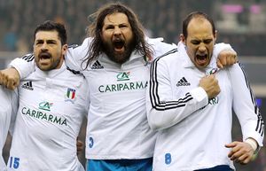 Andrea Masi, Martin Castrogiovanni and Sergio Parisse sing the national anthem 9/2/2013