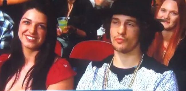 The camera panned to Nate Diaz in the crowd. He was only on screen for five seconds, but man did he make the most of his time.