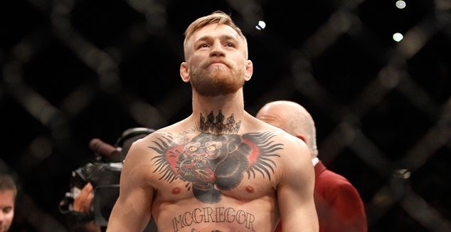 LAS VEGAS, NV - DECEMBER 12: Conor McGregor enters the Octagon for his featherweight title fight against Jose Aldo during UFC 194 at MGM Grand Garden Arena on December 12, 2015 in Las Vegas, Nevada. (Photo by Steve Marcus/Getty Images)