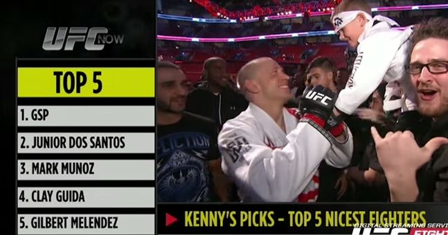 Florian, a lovely fellow in himself by all accounts, reckons that welterweight legend Georges St-Pierre is his pick for nicest guy in the UFC with Junior Dos Santos, Mark Munoz, Clay Guida and Gilbert Melendez filling out his top five.