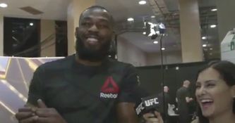 UFC interviewer Megan Olivi asked Jones about the injury and told ‘Bones’ that the kicks had seemingly broken Saint Preux’s arm.