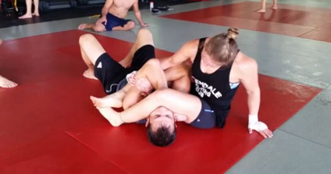 When rolling with UFC middleweight Luke Rockhold, who walks around at over 200lbs, Rowdy didn’t have too much trouble locking in an armbar.