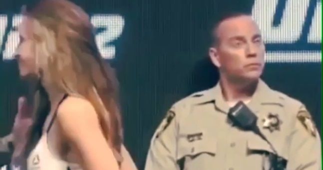 Eagle-eyed viewers of the UFC 196 weigh-ins may remember the wandering-eyed police officer in the background after Miesha Tate weighed in for her bantamweight title fight with Holly Holm.