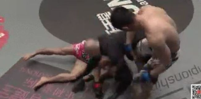 Pan lifted his opponent off the mat and hurled him backwards, driving Zhou’s head into the canvas. Zhou lost his grip as Pan began the move then quickly lost his consciousness as he slammed into the mat.