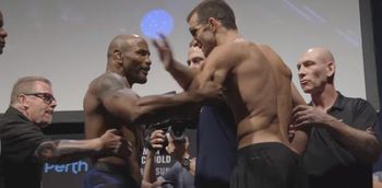 At the first attempt, Romero tipped the scales at 188.3 lbs. He had two hours to drop the extra weight, but still engaged in the obligatory staredown with the former champion on stage.