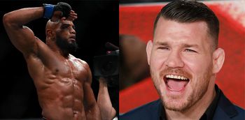 After annihilating the former king of the division with a devastating flying knee to the dome, he jumped out of the Octagon, performed his soldier walk celebration and grabbed hold of the mic to have a memorable exchange with Bisping, who was in the crowd.