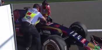 In fact, the bumbling marshalls managed to bump the car’s front wing and left front tyre against the wall before team mechanics raced down the pit lane to prevent any further damage.
