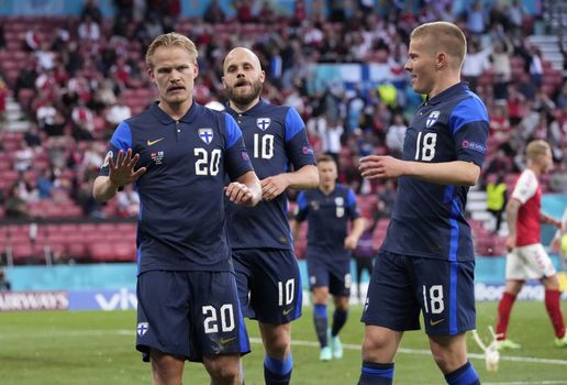 Who is this, apologising to the Danish crowd after scoring the only goal for Finland in the game in which Christian Eriksen collapsed?