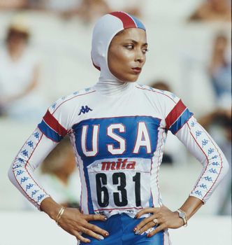 Who is this, holder of the women's 100m and 200m sprint world records?