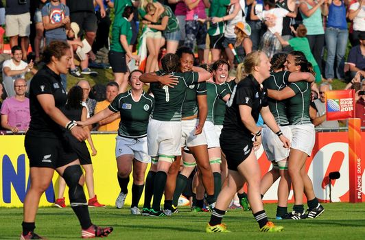 The Ireland women's team became the first Irish international side to defeat the All Blacks in what year?