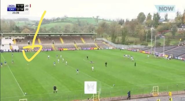 How far out was Raymond Galligan's winning free kick for Cavan against Monaghan?