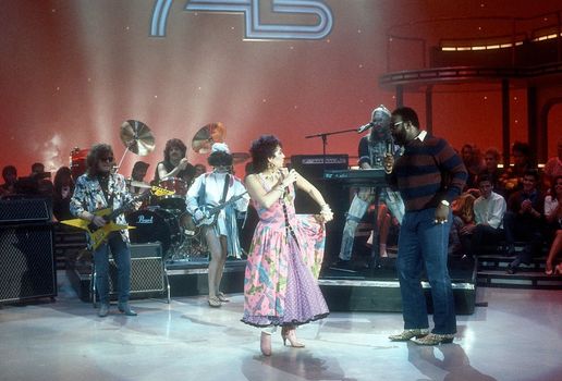 What wrestler is seen here (on the right) performing the song 'Grab Them Cakes' on American Bandstand in 1985?