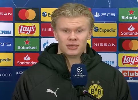 What was the final question asked of Erling Haaland in this BT Sport interview after the Brugge game?