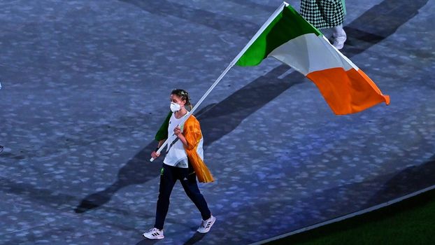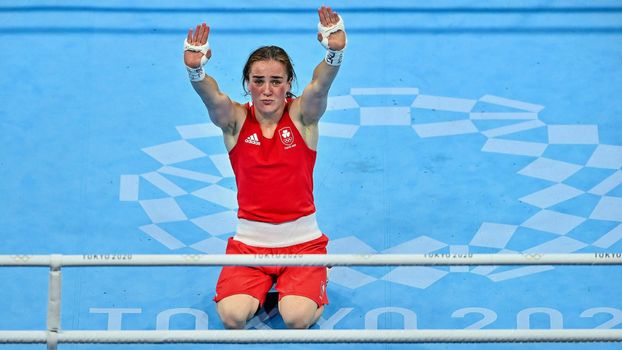 What former Olympic boxer joked that he was celebrating 'like a walrus' when Kellie Harrington won her gold medal at Tokyo 2020?